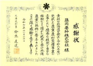 | 2024/12/05:北竜町より感謝状を頂きました |